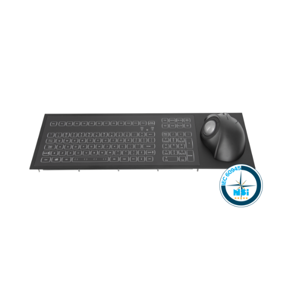 IEC60945 marine keyboard with 38 mm ergonomic trackball - panel mount
