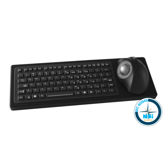 IEC60945 silicone keyboard with ergonomic trackball - desktop