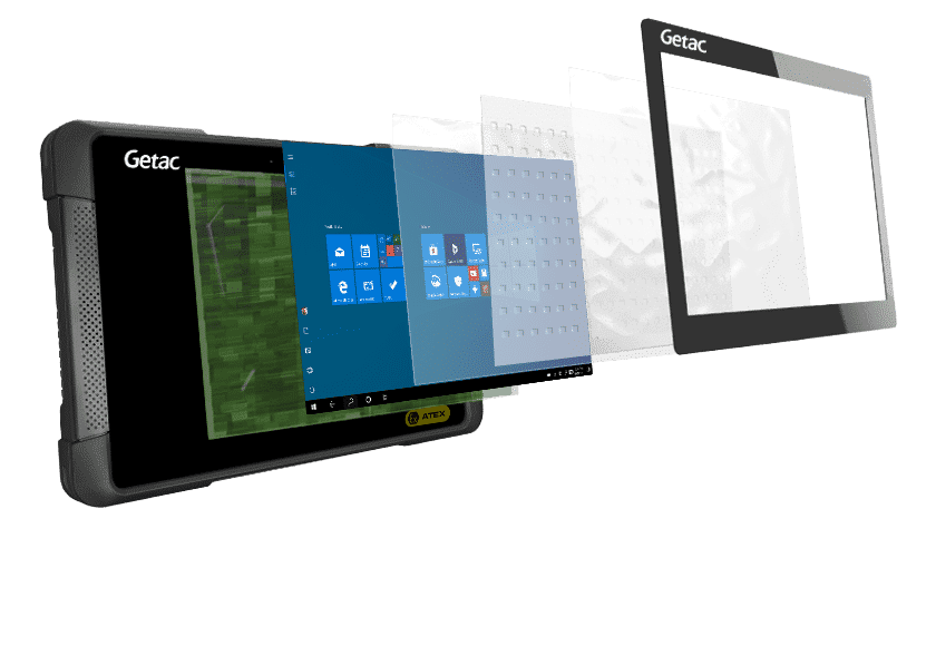 - 8.1" Wide Viewing Angle TFT LCD WXGA (1280 x 800), 600 nits LumiBond display with Getac sunlight readable technology