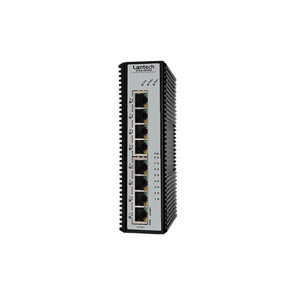 Lantech I(P)ES-0008B is a high performance all 8 10/100TX industrial Ethernet switch with w/8/6 PoE 802.3af/at ports.