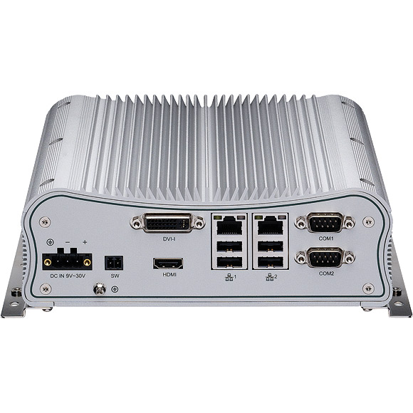 4 x USB 2.0 1 x DVI-I display output 1 x HDMI display output 1 x remote power on/off switch 2 x Intel® I210IT GbE LAN ports, support wake on LAN, Teaming and PXE 2 x DB9 for COM1 & COM2, both support RS232/422/485 with auto flow control - Jumper-free setting on RS232/422/485 1 x 3-pin DC input, support +9 to 30VDC input