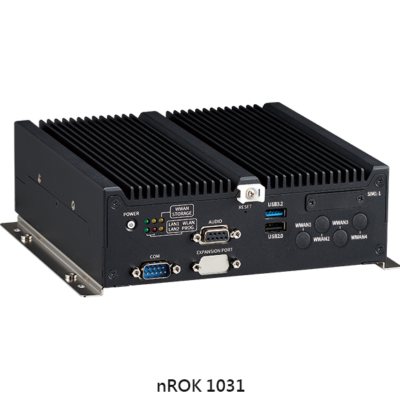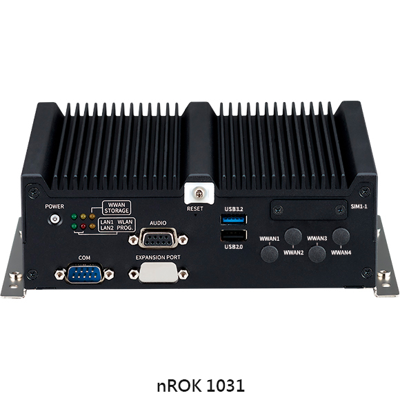nROK 1031 có bộ xử lý quad-core Intel Atom® x6413E tốc độ 1,5 GHz với các cải tiến về đồ họa và đa phương tiện mạnh mẽ. nROK 1031 cung cấp CAN 2.0B on board, giao diện USB tùy chọn (SAE J1939) để chẩn đoán xe và bộ thu GNSS tiên tiến hỗ trợ GPS+QZSS/Glonass/Galileo/Beidou. Ngoài ra, để kết nối, nó còn cung cấp dữ liệu không dây WLAN (Wi-Fi 5/6/6E) tùy chọn và WWAN (LTE/5G NR) tùy chọn. Để thuận tiện, có hai micro-SIM và một micro-SIM với thiết kế truy cập bên ngoài, cho phép người dùng dễ dàng truy cập vào thẻ micro-SIM. Được trang bị mô-đun tăng tốc AI M.2/mPCIe tùy chọn, nROK 1031 còn hoạt động như một nền tảng điện toán biên AI đáng tin cậy, cung cấp các giải pháp AI cải tiến cho đầu máy toa xe. Với vỏ chắc chắn, không quạt và nhỏ gọn, chiếc máy tính không quạt này có thể dễ dàng lắp đặt.