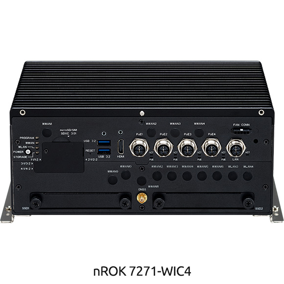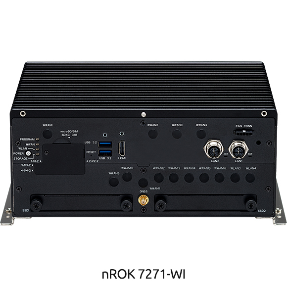 nROK 7271 đạt được hiệu quả hoạt động của dịch vụ và giao thông công cộng. Dựa trên CPU loại ổ cắm FCLGA1700 thế hệ thứ 12/13 Intel® và PoE 4/12 cổng 802.3 af/at, nó cung cấp một giải pháp tích hợp kết hợp sức mạnh tính toán cao. Với việc hỗ trợ hai thẻ SIM trên mỗi modem, nROK 7271 cho phép sao lưu hai thẻ SIM để có chất lượng kết nối tốt hơn bằng phần mềm. RAID 0, 1 đảm bảo an toàn cho dữ liệu trong 2 x SSD ngoài. nROK 7271 còn khác biệt hơn nữa khi cung cấp khả năng cách ly nguồn cho 24~110VDC và tùy chọn bảo vệ lên đến 3 giây chống sụt điện áp tạm thời, một tính năng quan trọng đối với các tình huống trong đó sự biến đổi điện áp đầu vào có thể làm tắt thiết bị. Với thiết kế mở rộng daughter board, tùy chọn thêm 1 khe cắm mini-PCIe (BOM tùy chọn cho M.2 Key E) và 2 khe cắm M.2 Key B, 8-port 1Gbps Ethernet Switch GbE, PoE 802.3af/at, tối đa 30W hoặc 2 cổng 10GbE M12 được mã hóa X, nROK 7271 duy trì tính linh hoạt để đáp ứng nhu cầu về các ứng dụng đầu máy toa xe khác nhau, chẳng hạn như thông tin giải trí, bộ định tuyến di động, video server và giám sát video.