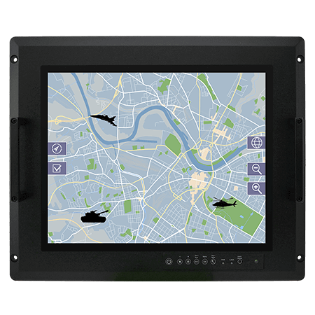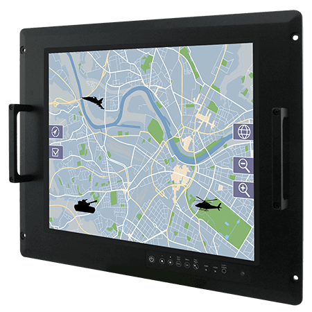 The Defence Console Rack Panel PCs feature a user-friendly touchscreen and physical OSD buttons for fast access to the central control located on the front panel.